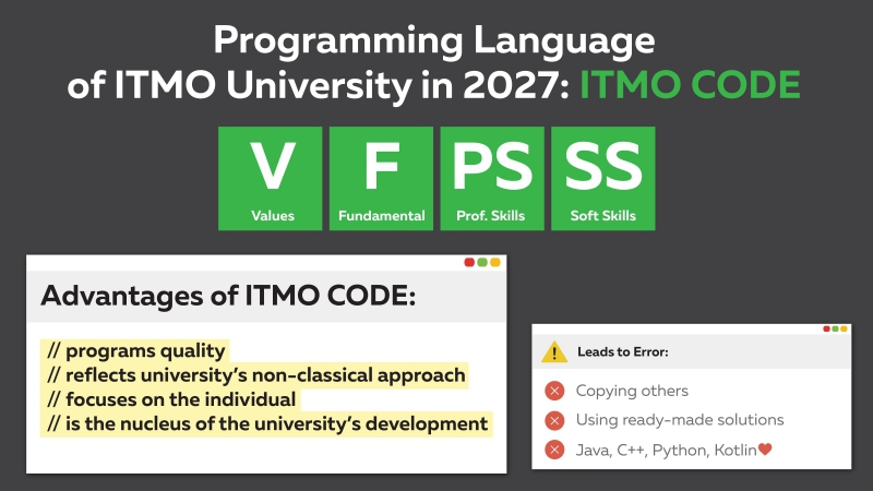 ITMO’s Values, Fundamental, Professional Skills and Soft Skills form the university’s unique “code”: V+F+PS+SS. We want our current and future employees to understand this concept, which will allow us to create a team of like-minded people who share the same values and mission and truly love their job. The main purpose of this competition is to create a strong team of teachers ready to implement new teaching techniques and face modern challenges.