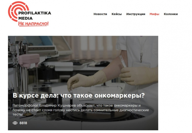 When we were still Master’s students in a science communication program, we discussed our future title’s structure, and decided on using a wide range of topics. By all means, oncology remains our main focus, but even this topic is now associated with many misconceptions and myths. Turning a blind eye to them would’ve been plain stupid. We still have few sources of information about oncology in Russian, and at least a half of those is based on questionable materials: things made up by journalists and bloggers, pseudo research, personal experiences and the like.