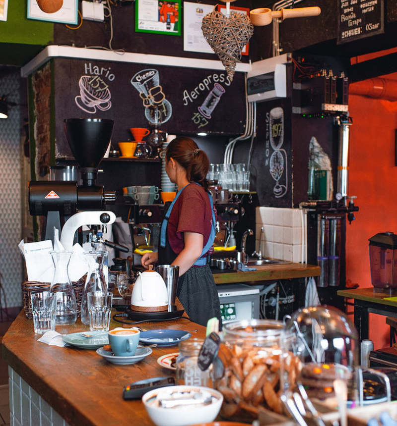 Now, all of the public spaces mentioned above offer a wide selection of food – from street food like falafel to fancier restaurant meals. They are all definitely worth a try, but it’s also always nice to have some trusty options spread all over the city just in case you suddenly get ravenous during your walk (or develop a Gilmore Girls-worthy desire for coffee). I can’t help but share one of my favorite coffee chains, Больше кофе (More coffee), with "homely" spaces to grab a coffee, located throughout the city center. It's worth checking out their cave (not a typo!) near Gorkovskaya metro station (close to ITMO’s Kronverksky campus) or their Кофе на кухне place on Fontanka Embankment (near ITMO’s Lomonosova campus). If you are lucky enough to get a seat, try каша вкусняша (a delicious bowl of oatmeal with pumpkin seeds, honey, and bananas) or сырники (quark pancakes) with blueberry jam.