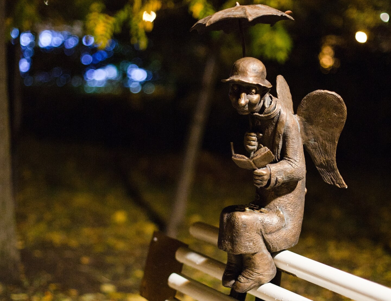 In 2012, a bronze angel appeared on one of the benches of Izmailovsky Garden. He’s sitting under an umbrella, cozily reading a book, and smiling, either about something he’s reading or just because that’s the person he is. This creation of sculptor Roman Shustrov quickly found its place in the hearts of locals and tourists alike: in the winter, he is wrapped in scarves; in the fall and summer, embellished with flowers or fallen leaves. Though this sculpture may have yet to gain its place among the more storied symbols of the city, for many it captures the true spirit of St. Petersburg.