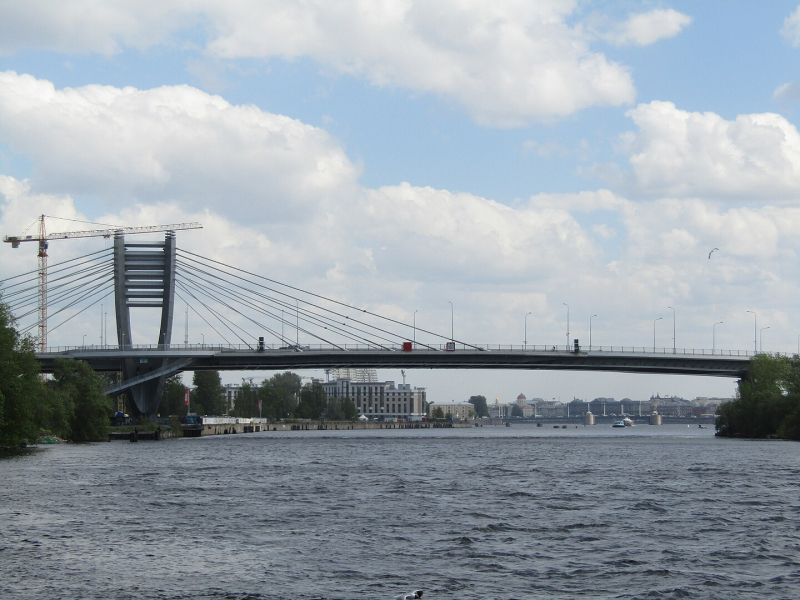 However, as far as we could tell, the newest completed major bridge in the city is the Betancourt Bridge connecting Petrovsky Island and Dekabristov Island and passing over Serny Island. Named after an 18th-century architect, the bridge offers quite a view over the city. Curiously, St. Pete's has already once had a bridge named after Betancourt (because he designed it) – it used to be in place of the Kamenoostrovsky Bridge, which now connects the Aptekarsky and Kamenny islands.