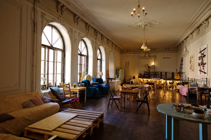 Compared to Etagi and Golitsyn Hall, the Couloirs creative space located in the very heart of St. Petersburg on Vasilievsky Island is relatively small and more off-the-beaten-track. People come here to watch and discuss a movie, listen to a lecture, attend a concert, take part in some peculiar workshop, make their own ceramic mug, or just drink a cup of coffee and enjoy the atmosphere of art and freedom.