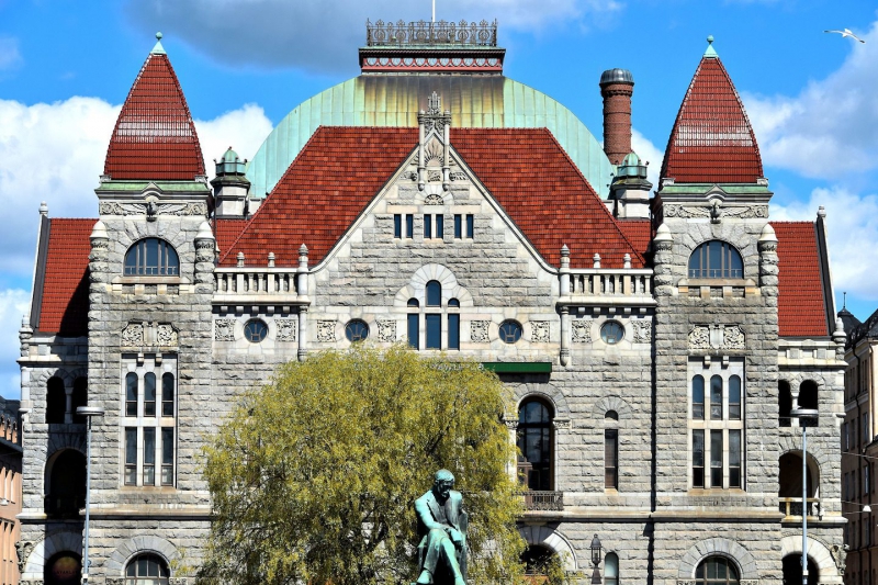 If you stroll down Aleksanterinkatu, colloquially known in Helsinki as Aleksi, you will notice a massive grey building with a green tower with a pine cone-shaped roof. It is the former headquarters of the Pohjola Insurance Company and a prominent example of Finnish national romantic architecture with façades made of rough-hewn soapstone decorated with floral and folklore motifs, such as sculptures of vegetation, squirrels, owls, trolls, bears (by the way, bear sculptures are very popular in Finland, much more than they are in Russia) and figures from the national epic Kalevala. This abundance of ornamentation will definitely take your breath away!