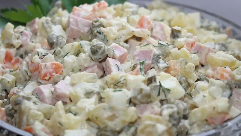 Another essential thing about a New Year's Olivier salad is that there has to be plenty of it, which makes this dish arguably the most common after-celebration morning grub.