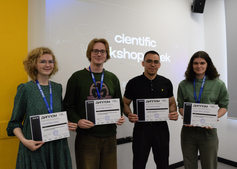 SWW 2025 participants: Sofia Goncharova, Platon Vasiliev, David Kurbanov, and Polina Sayfulina. Photo by Yulia Nagovitsyna / ITMO’s Advanced Engineering School