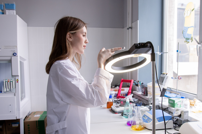 Researcher Olga Osmak photographs a lactic bacteria sample. Photo by Alina Fedorova / Megabyte Media