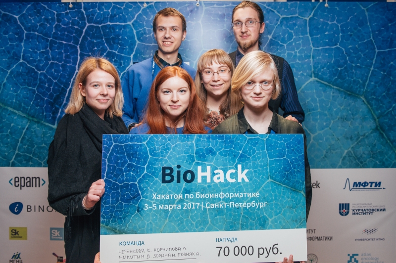The prize winners were teams that worked on "Research of bond states of water in biomacromolecule interfaces" and the "Horizontal gene transfer by bacteriophages in metagenomes" projects (ITMO's student Ludmila Kornilova was part of its team). The teams that got 3rd and 2nd got 50,000 and 70,000 rubles correspondingly. The first prize winners — team of the "Analysis of demographic history by genome data" project — got 100,000 rubles.
