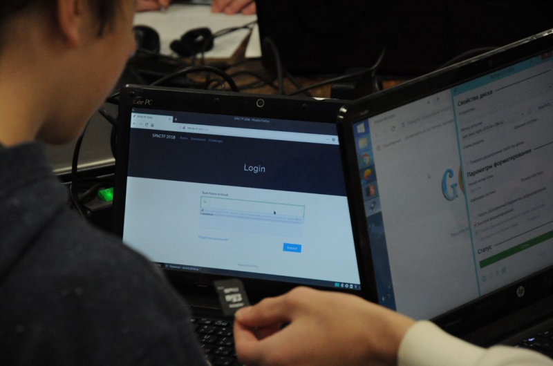 Ten teams were competing as part of the SPb School CTF-2018 tournament: nine came from St. Petersburg and one was representing Moscow. These are: ITMO University’s school team ITMO.KIDS, ‘MBTM’ from the Presidential Physics and Mathematics Lyceum №239, ‘SMyViBorik’ from the Lyceum №393, ‘Sys party’ from the Second St. Petersburg Gymnasium, ‘Good Bye World’ from the physics-maths classes ‘Silaedr’, ‘KITS’ from the Cadet School of IT Technologies, ‘Chill&Flex’ from the Lyceum №393, ‘%teamname%’ from the Digital Banana computer science school, CTF393 from the Lyceum №393, and ‘Sila’ (Power) from the Gymnasium №426. All participants study in 7-11th grades.