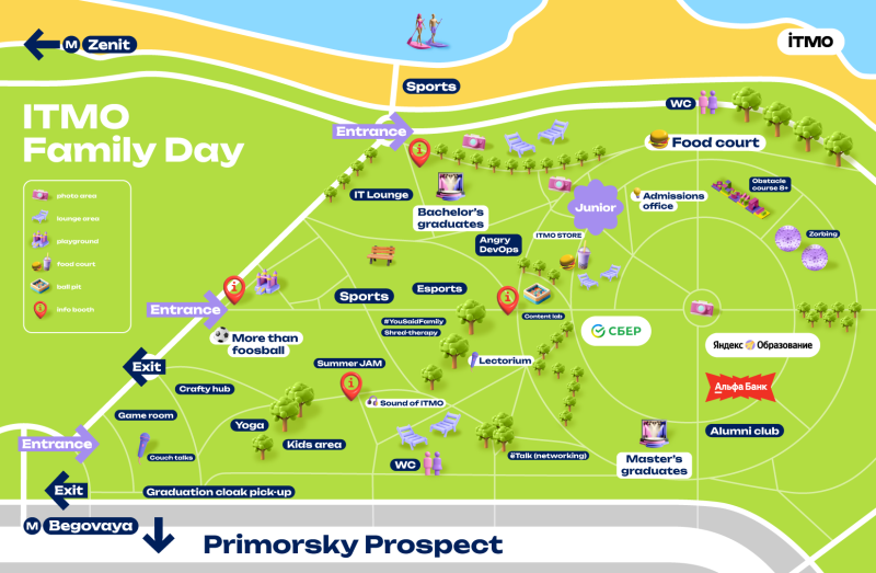 At ITMO Family Day, you will also get a chance to chill out at a giant antistress pool, get a reading from the digital fortune teller ITMO 2150, and create your own meme at the meme-booth. And if you really want to blow off some steam, be sure to stop by the cycle-shredder area – we are sure it will be most popular! Just write what worries you on a card and throw it into the device. The faster you cycle, the faster your worries will go away – and you’ll also get a sticker with tips for effective communications. Naturally, there’ll also be interactive zones from the festival's partners: Sberbank, Alfa-Bank and Yandex.Education – so that you can get the most of it!