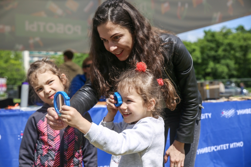 Those who like a more interactive approach could visit ITMO University’s area at the festival grounds. There, they could attend an Arduino workshop by ITMO’s FabLab and build and program their own chameleon lamp. The younger attendants tried to conquer Earth, fly a shuttle to Mars and build a rocket, all as part of a quest organized by OLIMP Laboratory and the “MIR” Center. The quest’s zones – control, electronics, programming and creativity – familiarized the players with the basics of robotics. Each successful task was rewarded with a rocket part. Those who did best, went home with a complete model rocketship.