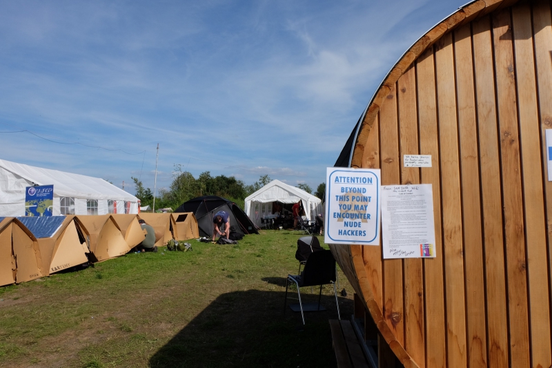 Территория лагеря была поделена на несколько полей, каждому из которых организаторы присвоили имя ученого или исследователя, связанного с информационной безопасностью (одна из зон, например, носила имя Эдварда Сноудена). Палатку гость мероприятия может установить где угодно, однако многие участники кооперировались в сообщества (деревни) по локальному признаку и устанавливали крупные тенты, после чего регистрировались и могли наряду с организаторами предложить другим участникам свои проекты для ввзаимодействия. Другими словами, помимо центральной программы, разработанной организаторами, гостей ожидали различные активности от обычных участников лагеря – жителей «деревень». Проекты команд можно увидеть здесь.