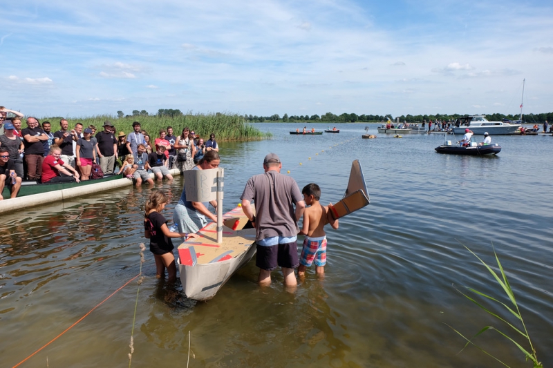 Территория лагеря прилегала к акватории, поэтому в один из последних дней программисты устроили соревнования – заплывы на самодельных картонных лодках. Плыли участники на время и должны были преодолеть на самодельных сооружениях из скотча и картона 25 метров.