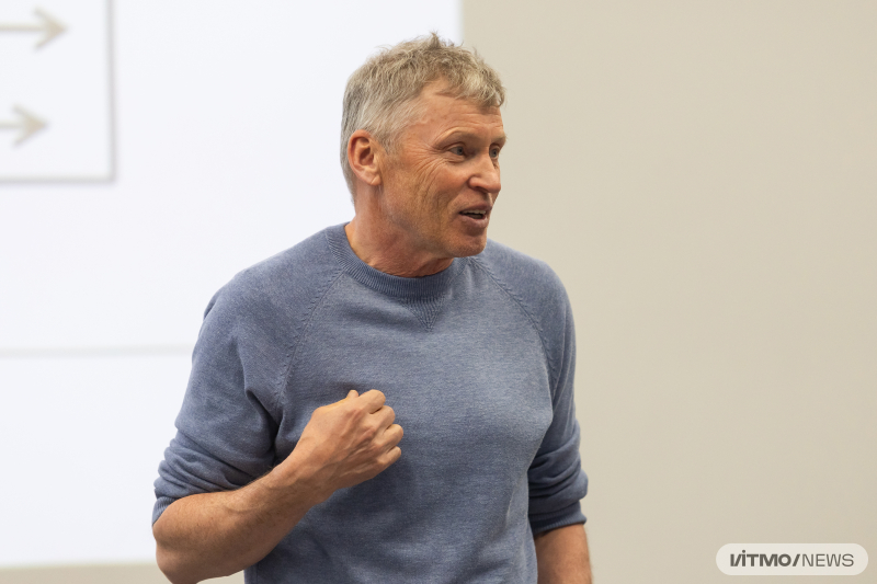 Андрей Волков — первый ректор Московской школы управления Сколково и один из идеологов ее создания, а сейчас директор Института общественных стратегий Сколково, научный руководитель проекта «Повышение международной конкурентоспособности российских университетов (5–100)» и программы «ПРИОРИТЕТ 2030». Также Андрей Волков — мастер спорта международного класса по альпинизму, «Снежный барс» (покоритель пяти вершин СССР выше семи тысяч метров) и восходитель на Эверест. В апреле он выступил одним из спикеров школы PI ИТМО, которая проводится для молодых исследователей ― будущих лидеров научных команд. В этом году участники школы узнали о трансформации высшего образования, создании продуктов, в том числе с помощью ИИ, управлении междисциплинарными проектами и планировании профессионального пути в ИТМО.