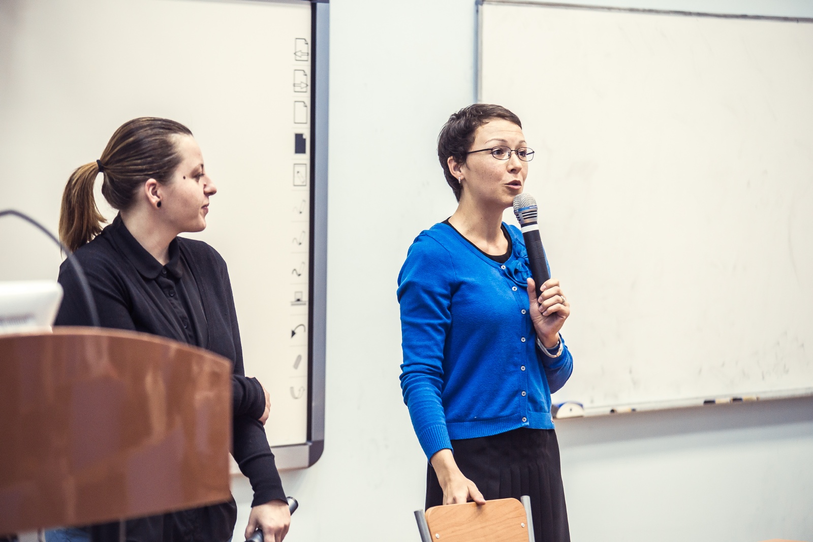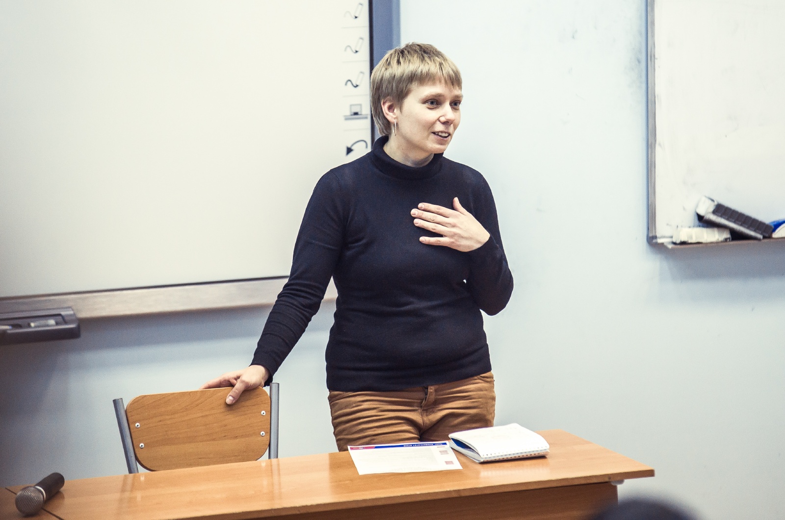 К открытому диалогу коллег призвали начальник управления интернационализации Мария Дидковская и директор Центра изучения иностранных языков Кристина Иванова. Рассказав о тех направлениях работы, которые реализуются в рамках управления интернационализации Университета ИТМО, они предложили всем заинтересованным присоединиться к ВРГ по разработке программ специальных дисциплин на английском языке. В данной задаче, считает Мария Дидковская, необходимо участие сотрудников самых разных подразделений Университета ИТМО: специальные лекции на английском языке будут читать «родные» преподаватели вуза, которые хотят видеть университет по-настоящему глобальным, и в их праве влиять на то, как будет выстраиваться образовательный процесс на иностранном языке.
