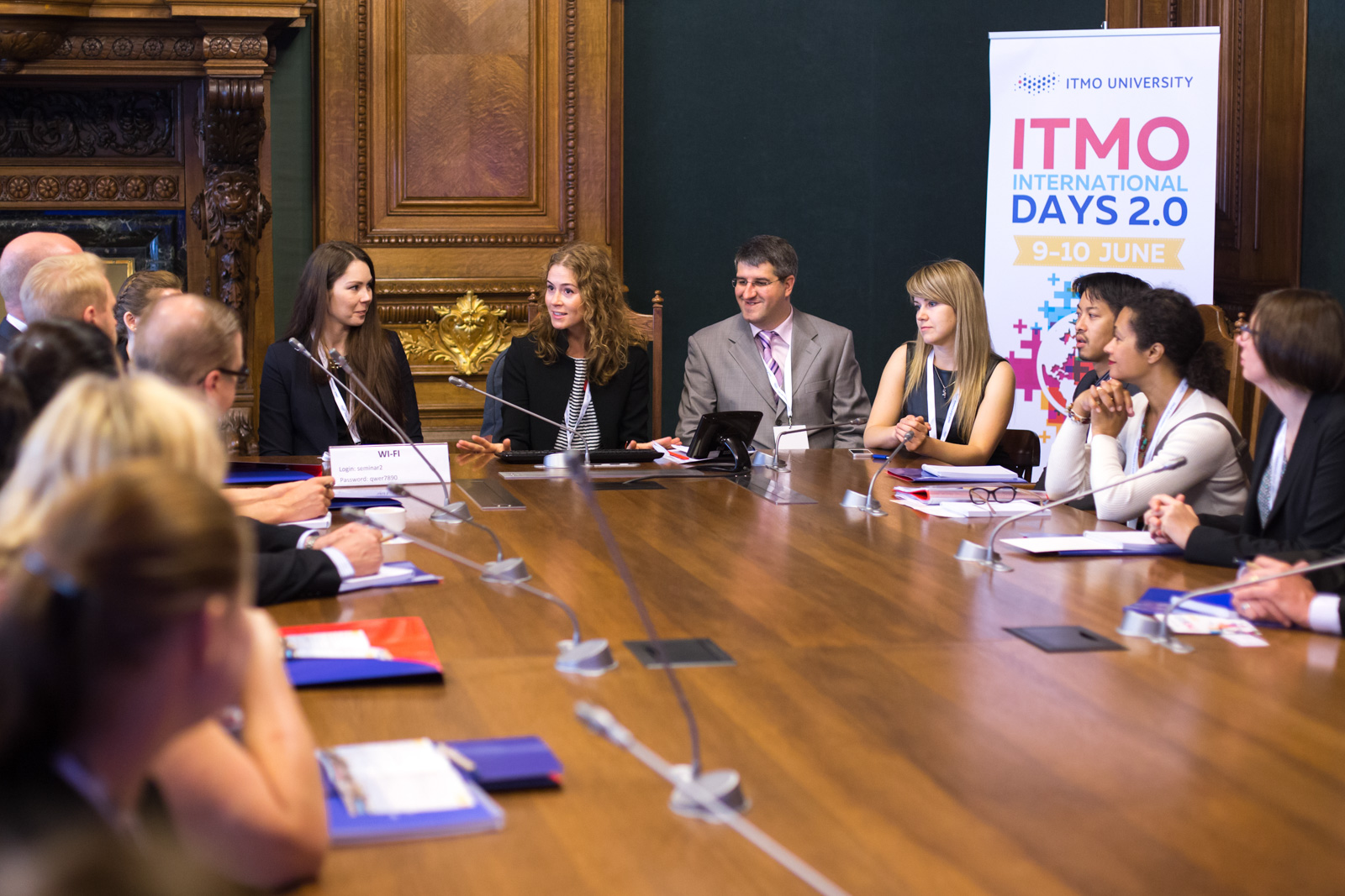 ITMO International Days стартовали с короткого приветствия в адрес иностранных гостей, в ходе которого проректор по международной деятельности Университета ИТМО Дарья Козлова обозначила для потенциальных партнеров основные направления деятельности вуза по интернационализации. Она сообщила коллегам, что университет уже не в первый раз становится лидером программы повышения конкурентоспособности отечественных вузов на мировой арене Проект 5−100 и работает не только в целях развития региона или России, но и стремится вырабатывать решения для глобальных вызовов в области информационной безопасности, сохранения искусства и других проблем. Также проректор рассказала о создании мегафакультетов Университета ИТМО и об открытии новых образовательных программ, например, магистерская программа по научной коммуникации. Кроме того, совместно с Университетом Аризоны (США) готовится к запуску СОП Art&Science.