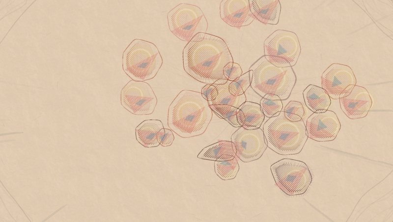 Как выглядит общая сумма потребляемой нами информации? Авторы проекта Kaleidoscope попытались ответить на этот вопрос: в режиме реального времени абстрактное картографическое представление сообщает зрителю о текущих событиях в мире публикаций. Каждый элемент визуализации – это новость или хэштег. На карте отражается пространственная близость, визуальный дизайн и общая компоновка, которые определены авторами по принципу и размерам семантического подобия содержания.