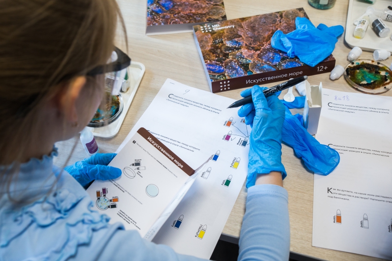 По итогам первого занятия ребята освоили не только теорию, но и комплекс практических знаний — как готовить растворы и отмерять вещества с помощью специальных приспособлений, добавляет Галина Константинова. Также задачей школьников было объяснить в конце занятия, что такое реакция ионного обмена.