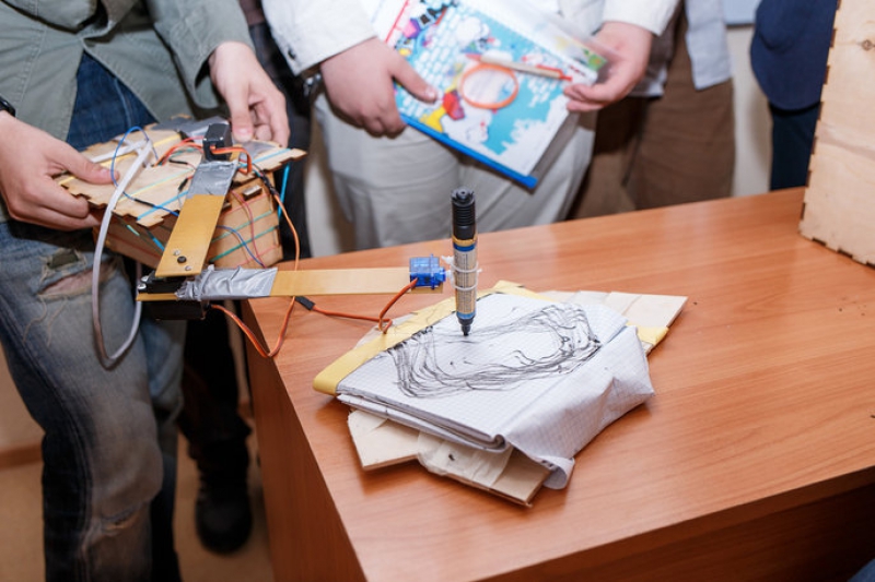 Второе место заняла команда, разработавшая прототип робота-художника, работающего по принципу рисования пикселями. Для создания прототипа робота участники использовали сервоприводы и серводвигатель. Робот создает изображение с помощью пишущего инструмента, вставленного пользователем в зажим. Участники проекта планируют сделать в будущем управление роботом с помощью сети Wi-Fi. Изобретение можно использовать для оперативного создания рисунка или же его можно запрограммировать на подписание различных документов.