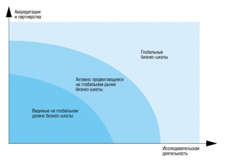 В результате дифференциации школ в зависимости от траектории их продвижения авторы исследования выделили три типа учреждений. Первый — уже состоявшиеся глобальные бизнес-школы, второй — бизнес-школы, активно продвигающиеся на глобальном рынке и третий — «глобально видимые» бизнес-школы, заметные на международном уровне как минимум по одному из ключевых критериев.
