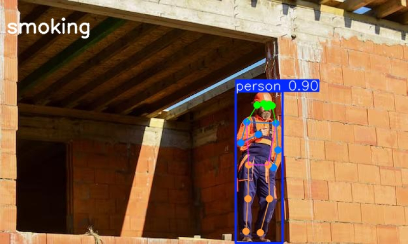 Нейросеть расставила скелетные точки на изображении курящего человека