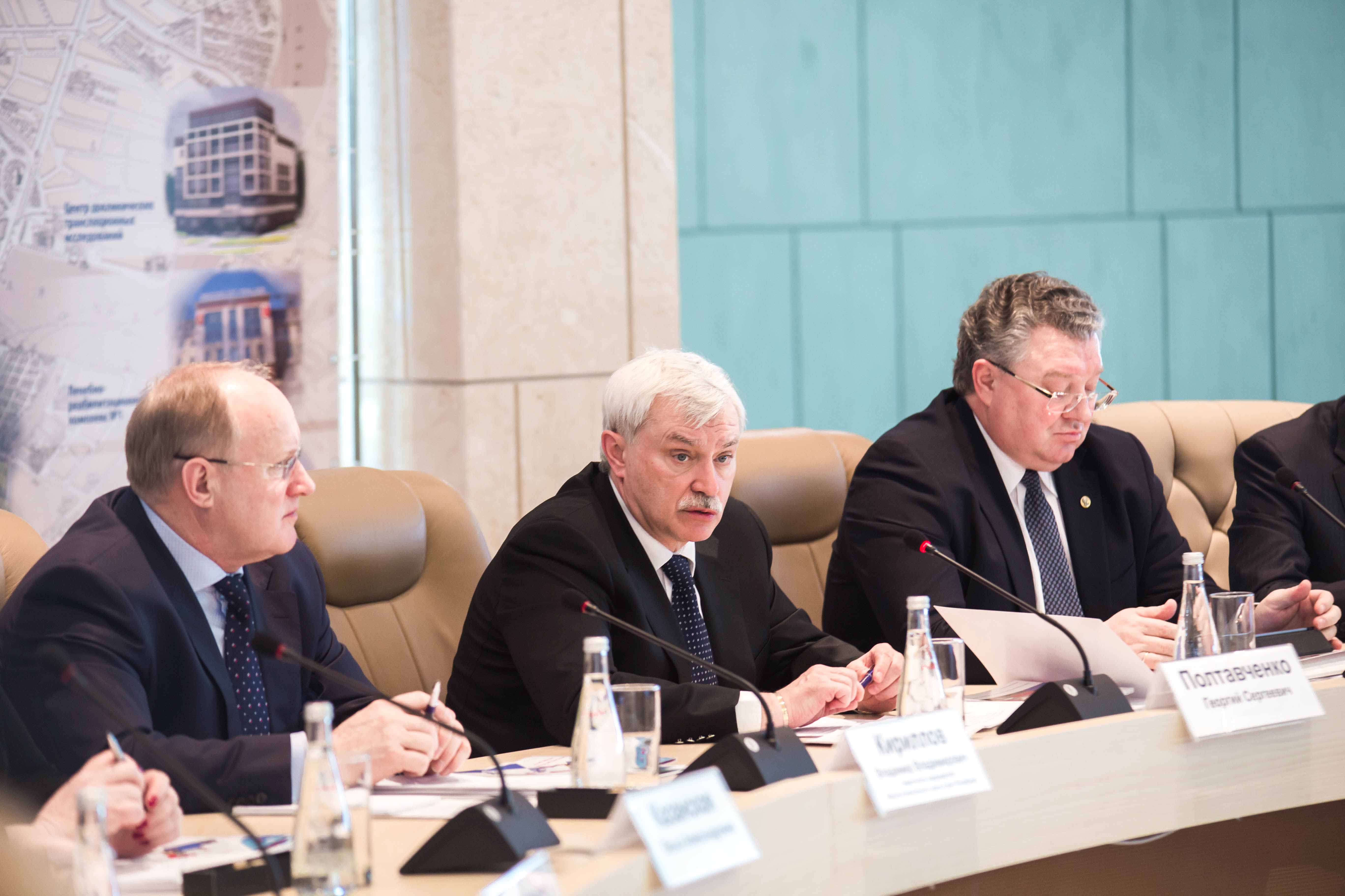 «Одна из главных задач Научно-технического совета — выработка совместных решений по эффективному использованию интеллектуального потенциала Северной столицы, — открыл заседание Георгий Полтавченко. — Исследования в области медицины являются для города приоритетными. Ранее было подписано соглашение между городом и Центром имени В. А. Алмазова, на базе которого создан научно-образовательный кластер „Трансляционная медицина“ с участием ведущих вузов Санкт-Петербурга. Оно позволит ускорить внедрение передовых технологий в медицинской и фармацевтической отраслях. Кластер будет заниматься вопросами подготовки высококвалифицированных кадров и разработкой новых технических средств медицинского назначения. Он объединит разные направления исследований: информационные технологии, приборостроение, медицину, биологию, химию. Реализация соглашения позволит нашему городу занять лидирующие позиции в области трансляционной медицины».