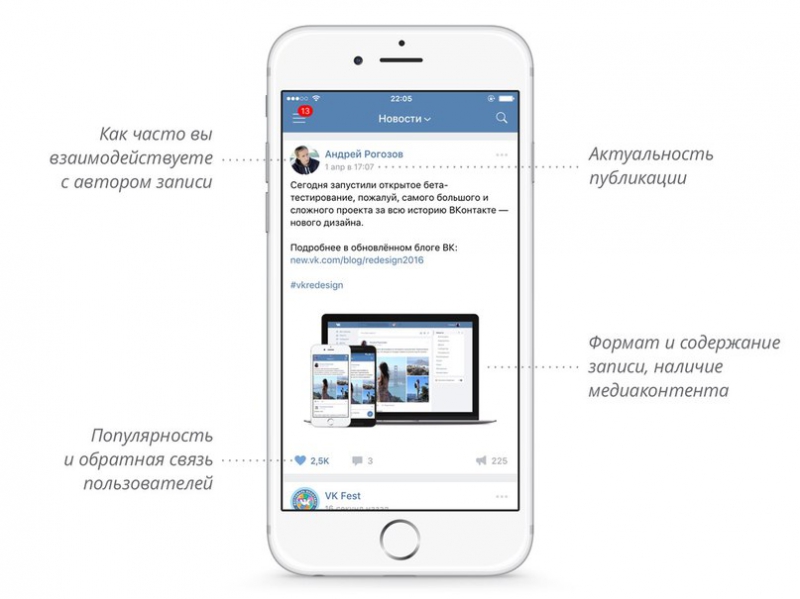 С 2016 года у нас добавились новые факторы, которые теперь учитываются при формировании ленты. Если мы начинали с достаточно простого алгоритма, который все же решал довольно заметную часть проблем, сейчас факторов стало в десятки раз больше, и алгоритмы, которые предсказывают интересы пользователей, стали эффективнее.