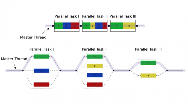 Проблема в том, что каждый Fork/Join сколько-то стоит, то есть его вызов занимает сколько-то времени. Поэтому важная задача — определить, когда их нужно вызывать, а когда нет. Ведь если у вас две маленькие задачи, которые вы хотите запустить в параллель, то стоимость Fork/Join может просто перебить стоимость самих задач и вам будет выгоднее сделать все последовательно.