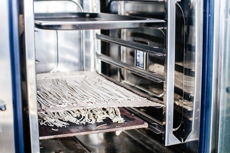 Так как при изготовлении макарон используется сырая печень, разработчикам необходимо ликвидировать опасные микроорганизмы и прочие вещества, которые могут навредить человеку или самому продукту. Для этого макароны высушивают с помощью ультразвука при температуре 95 градусов Цельсия в течение двух минут. За это время изделия прогреваются полностью. Потом их нужно досушить в течение 40 минут при температуре 60 градусов и потом еще четыре часа — при комнатной температуре, после чего изделия помещают в небольшие водопроницаемые порционные пакетики и лишь затем — в специальную влаго- и воздухонепроницаемую транспортную тару.