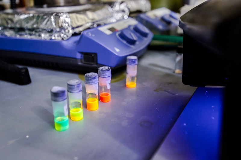 Магнитное ядро покрывается полимерной оболочкой, к которой присоединяются квантовые точки. Они выполняют роль люминесцентных биомаркеров и позволяют отслеживать передвижения наносистем по организму. В работе планируется использовать квантовые точки из фосфида индия, которые при биодеградации обладают существенно меньшей токсичностью, чем используемые повсеместно точки на основе ионов кадмия.