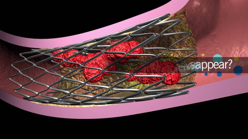 Стентирование коронарных артерий является одной из наиболее безопасных и эффективных процедур восстановления нормального просвета артерий, имеющих атеросклеротические изменения. Стент представляет собой сетчатый цилиндрический металлический каркас, разворачиваемый в закупоренном участке артерии и удерживающий ее от повторного сужения. После установки стент естественным образом покрывается тканью внутренней выстилки сосуда.