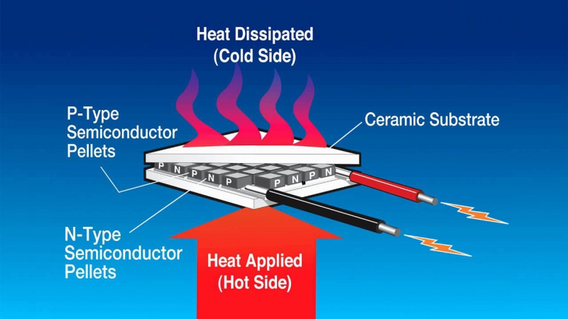 Еще один класс революционных материалов будущего — термоэлектрики. И здесь можно придумать массу фантастических применений как для прямого термоэлектрического эффекта, так и для обратного. Где можно применять термоэлектрики? Можно делать на этом эффекте холодильники, приборы ночного видения, такими приборами можно также улавливать тепло теплоэлектростанций, повышая их КПД, или, например, улавливать тепло, которое теряется в вашем автомобиле при нагреве двигателя, и превращать его в электричество. Или представьте себе наручные часы, которые подзаряжаются с помощью энергии тепла вашего тела. Такая технология тоже доступна с помощью термоэлектриков.