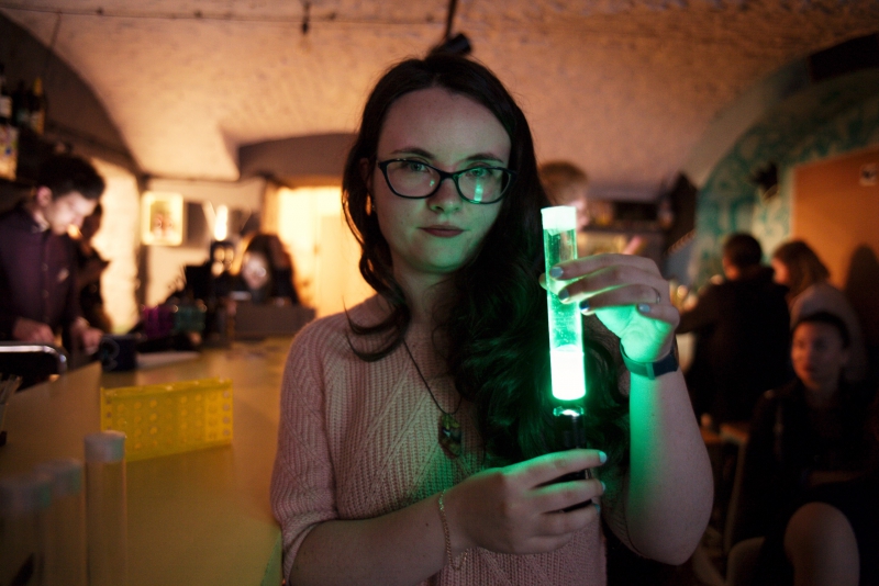 В аспирантском кругу есть те, кто регулярно принимает участие в таких мероприятиях. Мы с коллегами самостоятельно изъявили желание выступить с докладами, взяли контакты организаторов, рассказали, чем занимаемся, и предложили несколько вариантов докладов. Представители издания «Бумага»* решили, что в рамках «Ночи науки» слушателям интереснее будет узнать про антибактериальные структуры, про то, зачем они нужны и как помогут обществу не умереть от бактериальных инфекций. Работа над антибактериальными структурами – тема моей кандидатской диссертации. Я формирую антибактериальные структуры из отдельных компонентов, которые синтезируются у нас в лаборатории, исследую их физические свойства, насколько эффективно данные структуры способны генерировать активные формы кислорода, изучаю, как они взаимодействуют с бактериями.