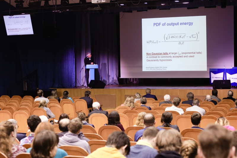 Пленарное заседание первого дня конференции открыл профессор Университета Аризоны (США) и директор Центра фотоники и квантовых материалов Сколтеха Ильдар Габитов с докладом о структурной разупорядоченности и ошибках в оптоволоконных коммуникационных системах. Несмотря на то, что уровень ошибок в современных системах мал, редкие события могут приводить к разрушительным последствиям, поэтому важно производить их оценку и знать их статистические свойства, подчеркивает ученый. Следом за ним свой доклад представил врио директора Казанского физико-технического института им. Е. К. Завойского Алексей Калачев. Он рассказал об элементной базе, протоколах и параметрах работы дальнодействующей квантовой связи — источниках однофотонных и перепутанных двухфотонных и многофотонных состояний, квантовых повторителей и квантовой памяти. Как отмечает Сергей Козлов, доклады, прозвучавшие во время пленарного заседания, демонстрируют эволюцию и влияние конференции на развитие отечественной оптической науки.