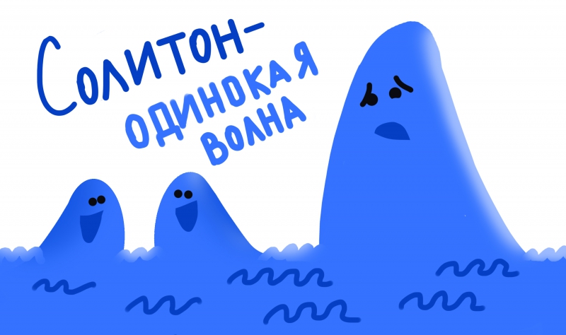 Да, мы предложили не пытаться бороться с нелинейностью, а использовать ее. Запустить достаточно узкий во времени импульс с большой мощностью и добиться возникновения дисперсии. В результате влияния эффектов нелинейности и дисперсии мы получим импульс света, способный поддерживать свою форму. Нелинейность заставляют участки волны притягиваться друг к другу и не расходиться. Это как бы волна, состоящая из одного горба. Она не генерирует рябь (как на поверхности воды) и поддерживает себя сама. В оптике возможна ситуация, когда нелинейность приводит к тому, что отдельные участки волны притягивают друг друга. Они не расплываются. У вас бежит самоподдерживающийся, нелинейный импульс света – солитон (от англ. solitary wave — уединенная волна).