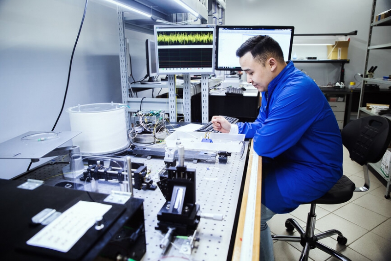 В целом мы сконцентрировались на двух основных направлениях: первое — это исследования свойств оптических компонентов, к примеру, оптических волокон, интегральных волноводов, полупроводниковых лазеров, фотодиодов, второе — это стыковка и юстировка этих оптических компонентов для задач сборки полноценных измерительных устройств, пуско-наладка которых проходит в других лабораториях НИЦ СФ, где мои коллеги занимаются разработкой электроники, программированием, окончательной сборкой и проведением комплексных испытаний наших устройств.