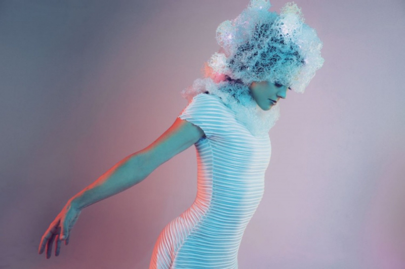 Проект, представляющий собой анимацию мозга и картирование сознания. Это сооружение, созданное с помощью 3D-принтера и оптоволокна. Мы сделали 14 контактов с головой модели наподобие электроэнцефалограммы и снова использовали палитру цветов от холодного до теплого. Например, если человек медитирует, «светится» передняя часть мозга, если он совершенно расслаблен — мозжечок. Мы представили этот дизайн на конференциях по здравоохранению и подиумах. Как-то раз мы даже сделали наш убор общедоступным: любой желающий мог прийти и примерить его. Мы организовали медитацию с участием трех человек, а после медитации предоставили им электроэнцефалограммы их мозга. Медитация была чем-то вроде упражнения для мозга: под руководством специалистов разные части мозга активизировались в разное время. Самое главное, что даже в момент полной релаксации мозг остается активным. И, конечно же, мы в очередной раз нашли подтверждение тому, что мозг каждого человека уникален.