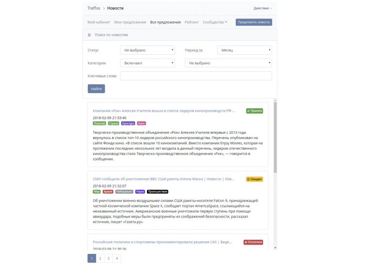 Редакция получает оповещение о поступившей новости и приступает к ее обработке. При этом инфоповод может не пройти еще на первом этапе. Администратор сообщества может заранее установить фильтры по определенным ключевым словам. Например, если ему не интересны новости об Олимпиаде, все соответствующие инфоповоды будут автоматически заблокированы. Кроме того, можно блокировать ссылки на новости определенных изданий. К примеру, редакция «Лентача» не принимает новости ТАССа, «Интерфакса» и других федеральных СМИ, потому что регулярно мониторит их сама.