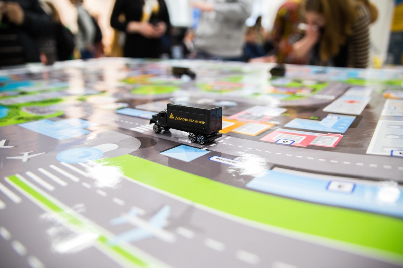 Транспортно-логистическая компания «Деловые Линии», лидирующая в России по объему продаж и занимающаяся доставкой сборных грузов по территории России и странах ближнего зарубежья, предложила учащимся университета в рамках мероприятия поиграть в деловую игру. Организаторы решили наглядно представить студентам, что такое логистика. Перед студентами была разложена карта, состоящая из двух частей. Принцип игры, рассчитанной на две команды, как у твистера: есть бегунок, есть ходы, нужно доставить с помощью игрушечных автомашин груз из пункта А в пункт Б. На карте расположены терминалы, банки, супермаркеты, и обе команды доставляют грузы. Выигрывает та команды, которая делает это быстрее и эргономичнее. Идея игры в том, что она понятна даже не для специалистов сферы.