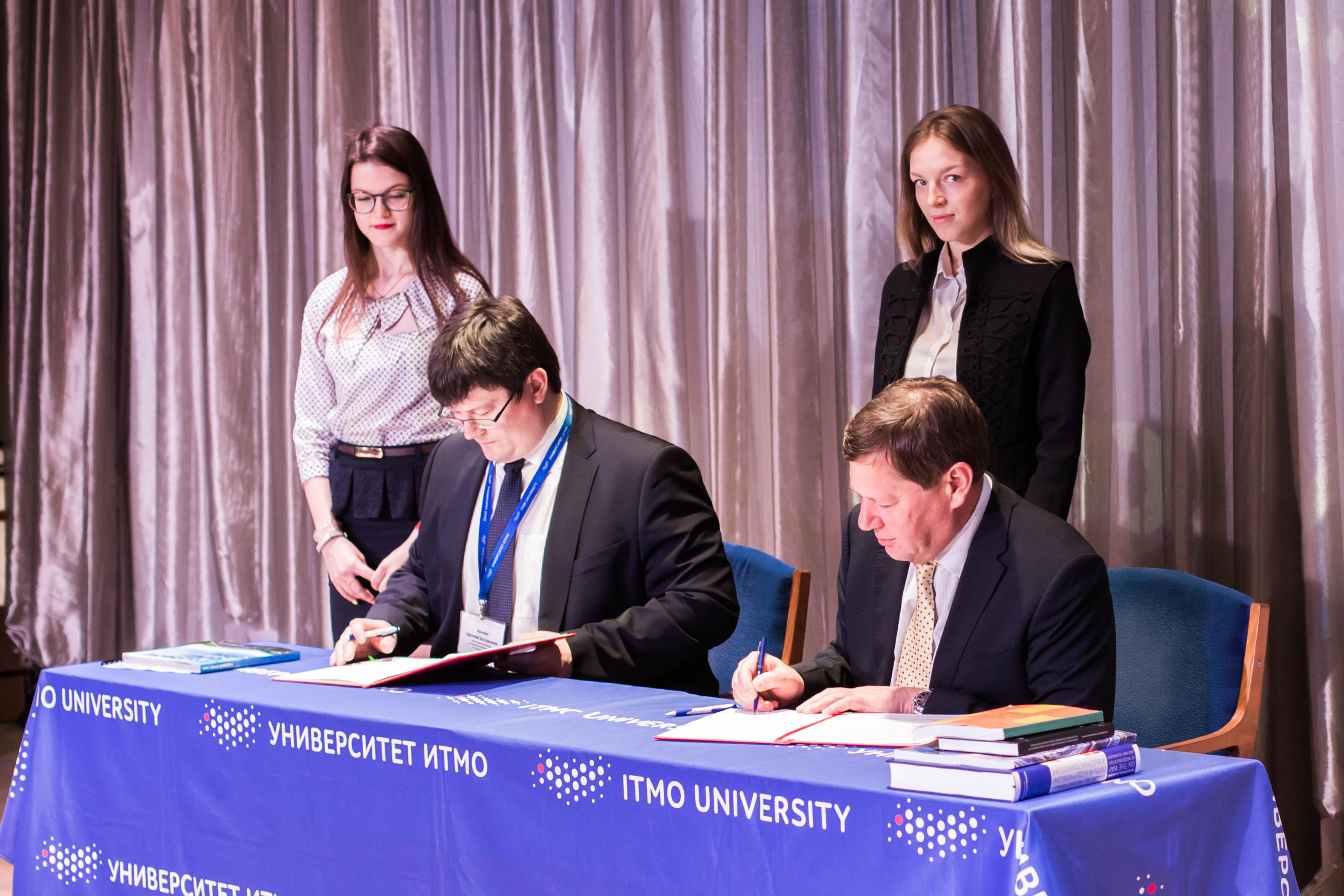 В состав жюри регионального этапа конкурса вошли ректор Университета ИТМО Владимир Васильев и заместитель директора по стратегическому развитию АО «Росэлектроника» Арсений Брыкин. Позже они подписали соглашение о сотрудничестве между вузом и организацией, а участники регионального этапа конкурса получили дипломы от «Росэлектроники».