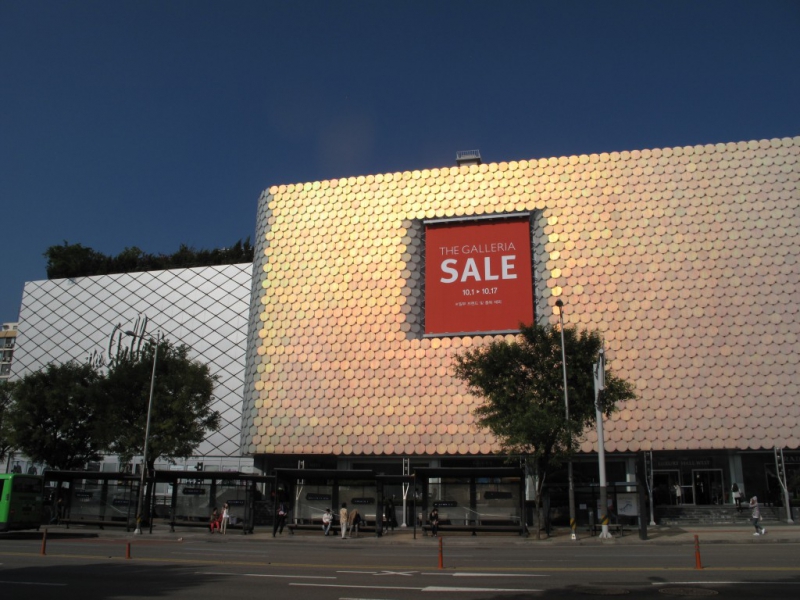 Эту стратегию Рогир ван дер Хейде воплотил в проекте освещения здания торгового центра Galleria West в Сеуле. Помещение снаружи представляло собой огромную и однотонную «коробку» бывшего промышленного цеха. Чтобы оживить конструкцию, светодизайнер решил «приодеть» ее в яркие и переливающиеся цвета. Вдохновением послужили простые стеклянные бутылки, которые отражали радужный спектр. Но как этот эффект можно было применить на здании? После ряда экспериментов Рогир покрыл всю наружную поверхность сооружения небольшими светильниками LED, способными передавать миллионы цветов. Светильники он скрыл за стеклянными дисками, каждый из которых играет роль «пикселя» гигантского фасада-экрана. В результате бездушные когда-то стены начали переливаться всеми оттенками видимого спектра.