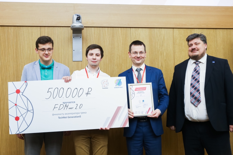 Первое место и 500 тысяч рублей экспертный состав присудил команде FDM ver. 2.0, разработавшей экструдер (модуль для печати) для 3D-принтера FDM ver. 2.0, чтобы увеличить скорость печати в несколько раз. FDM ver. 2.0 разрабатывает продукт, существенно расширяющий возможности традиционных технологий FDM 3D печати полимерами, композитами, прочными высокотемпературными пластиками и легкоплавкими металлами. По словам автора проекта, новый экструдер позволит улучшить скорость и точность печати и изготавливать детали из материалов с температурой плавления свыше 1000 градусов, притом что температура других принтеров составляет 200-300 C. Пропускная способность у FDM ver. 2.0 – 800-1000 мм в секунду за счет высокопрочных сплавов вместо латуни и бронзы (к слову, у стандартного экструдера пропускная способность 200-300 мм в секунду). Продукт предназначен для создателей 3D-принтеров, студий 3D печати, производителей изделий из композитов и легкоплавких металлов. Принтеры с новым экструдером можно применять на современном производстве, использующим аддитивные технологии в химической, медицинской, автомобильной и аэрокосмической промышленности и научных исследованиях.
