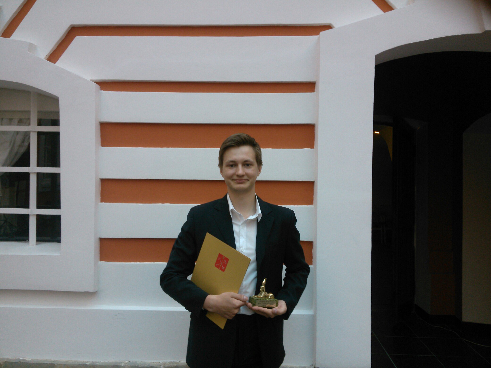 Лучшие выпускники получили благодарственную грамоту, подписанную губернатором Санкт-Петербурга Георгием Полтавченко, и статуэтку бронзового сфинкса — символ Союза ректоров Северной столицы. Свою награду получил и выпускник Университета ИТМО — магистр Института дизайна и урбанистики, руководитель ФабЛаба Алексей Щеколдин. В Университете ИТМО лучшего выпускника выбирает Совет обучающихся вуза: потенциальный претендент должен не только иметь высокую успеваемость, но также активно участвовать в деятельности вуза. Как руководитель ФабЛаба Алексей регулярно представляет Университет ИТМО на событиях городского, всероссийского и международного масштабов.