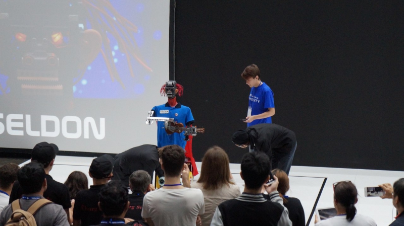 В аналогичной номинации школьная сборная петербургского вуза выступила и в Тайланде. Напомним, что в номинации On Stage соревнуются роботы, которые показывают шоу для публики чемпионата. Робот Seldon – опытный артист, который уже покорил не одну международную сцену. Визитная карточка робота – исполнение песни Адель «Rolling in the deep» под аккомпанемент на укулеле и с уникальной подтанцовкой. На сцене вместе с гуманоидом выступают еще три робота – робот «Глазастик» и два Дарвина – и два разработчика из команды. В Бангкок Селдон привез не только опыт, но и усовершенствованную конструкцию: каркас робота стал жестче, а его механика – продуманнее. Благодаря команде школьной сборной Университета ИТМО под руководством тренеров, сотрудников кафедры систем управления и информатики Игоря Лосицкого и Евгения Заварина, Seldon начал говорить и отвечать на вопросы на английском языке. Теперь робот обладает техническим зрением и двумя камерами: одна из них управляет «Глазастиком» (Seldon контролирует его положение на сцене), другая нацелена на взаимодействие с человеком.