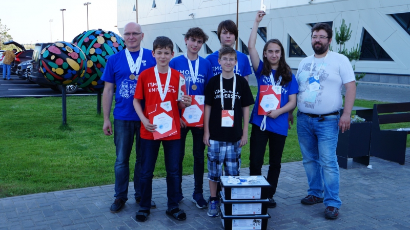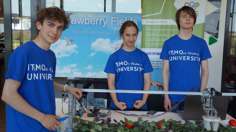 Участники младшей возрастной группы (до 12 лет) школьной сборной Университета ИТМО — Алексей Кудряшов из лицея № 533 (Юношеская математическая школа) и Дмитрий Горовой из физико-математического лицея № 366 — разработали автономного робота AppleBot, который собирал яблоки и отвозил их к сортировщику, и по итогам соревнований завоевали второе место. Команда старшей группы (от 15 и старше) в составе: Василий Дунаев и Дмитрий Харлапенко из Президентского физико-математического лицея №239 и Александр Тюльпанов из Лаборатории непрерывного математического образования (ЛНМО) — представила проект Strawberry Fields, который обеспечил робототехникам золотую медаль соревнований. Strawberry Fields — это «умная» грядка, где выращивается клубника. При помощи камеры робот обнаруживает клубнику, после чего размещает карту грядки в интернете. Используя специальное приложение, любой человек может выбрать любую ягоду с грядки, после чего робот собирает необходимое количество клубники.