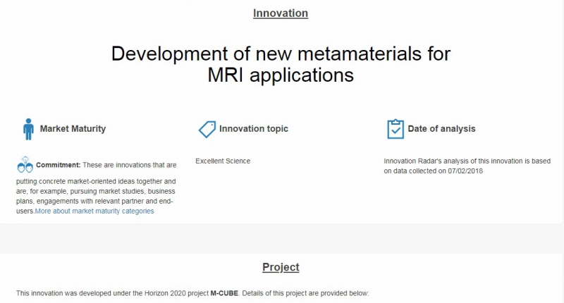 В 2017 году международный исследовательский консорциум, в состав которого входит Центр нанофотоники и метаматериалов Университета ИТМО, вошел в число победителей гранта Horizon 2020, обойдя более 500 других претендентов. В рамках проекта M-Cube научные группы и компании из семи стран ведут работу над новой технологией улучшения магнитно-резонансной томографии. За четыре года ученые планируют создать готовые для внедрения прототипы устройств, основанные на новом подходе, существенно ускоряющем и улучшающем процедуру МРТ. В настоящий момент проект находится в наиболее активной фазе исследований. Подробнее о проекте мы писали ранее.