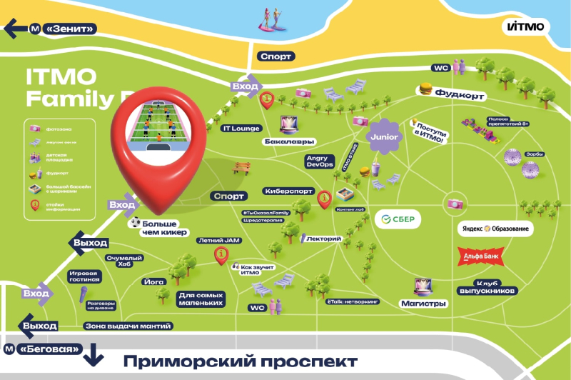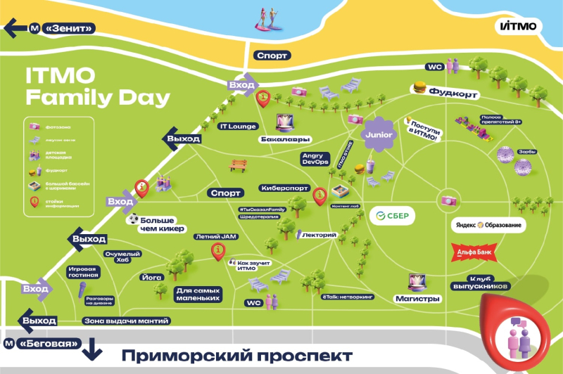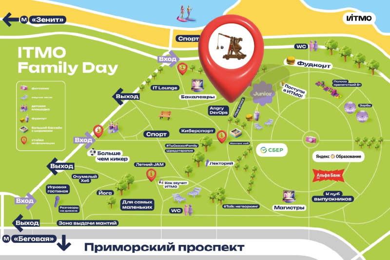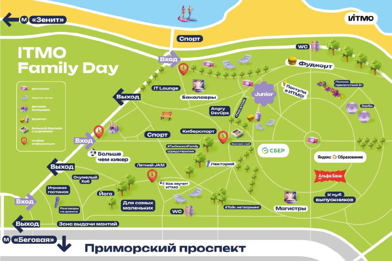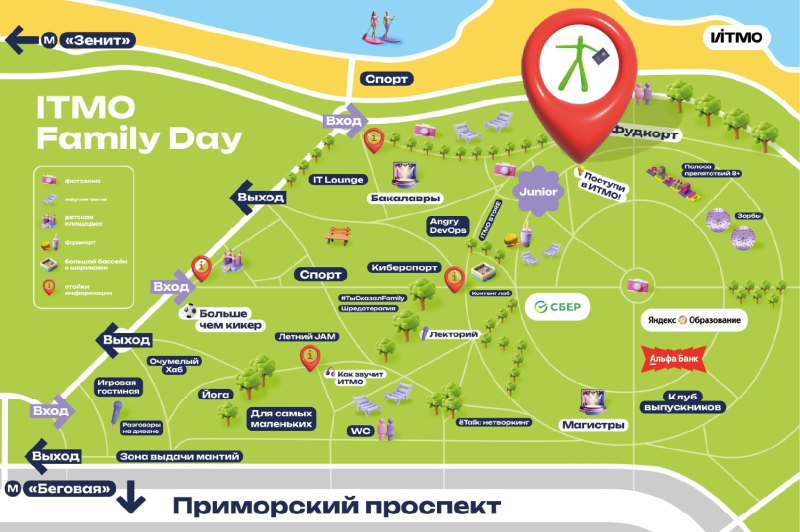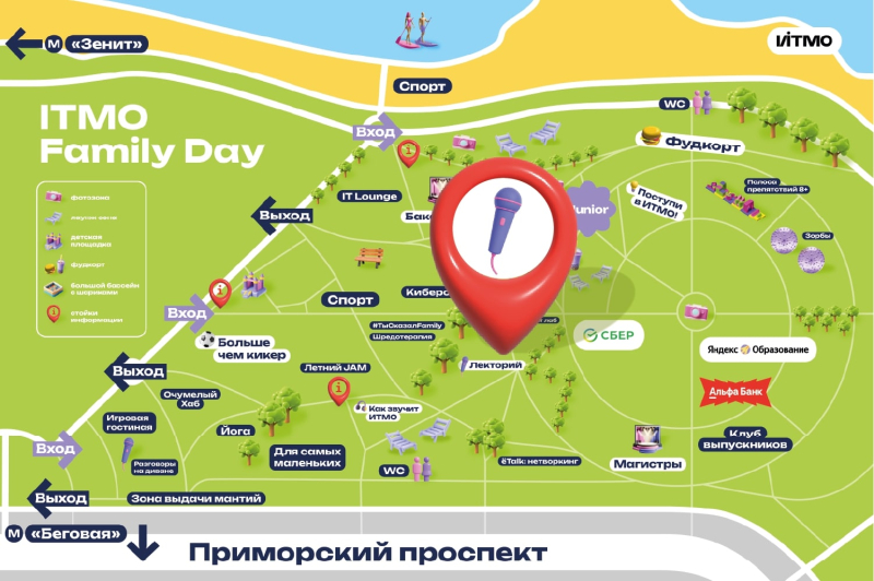 Все зоны будут работать на берегу Финского залива в Парке 300-летия Санкт-Петербурга. Подробную программу ITMO Family Day смотрите на сайте. И не забудьте зарегистрироваться! Ждем всех желающих ― не только студентов и сотрудников ИТМО. Главное — получите бесплатный билет и покажите его на входе на площадку.