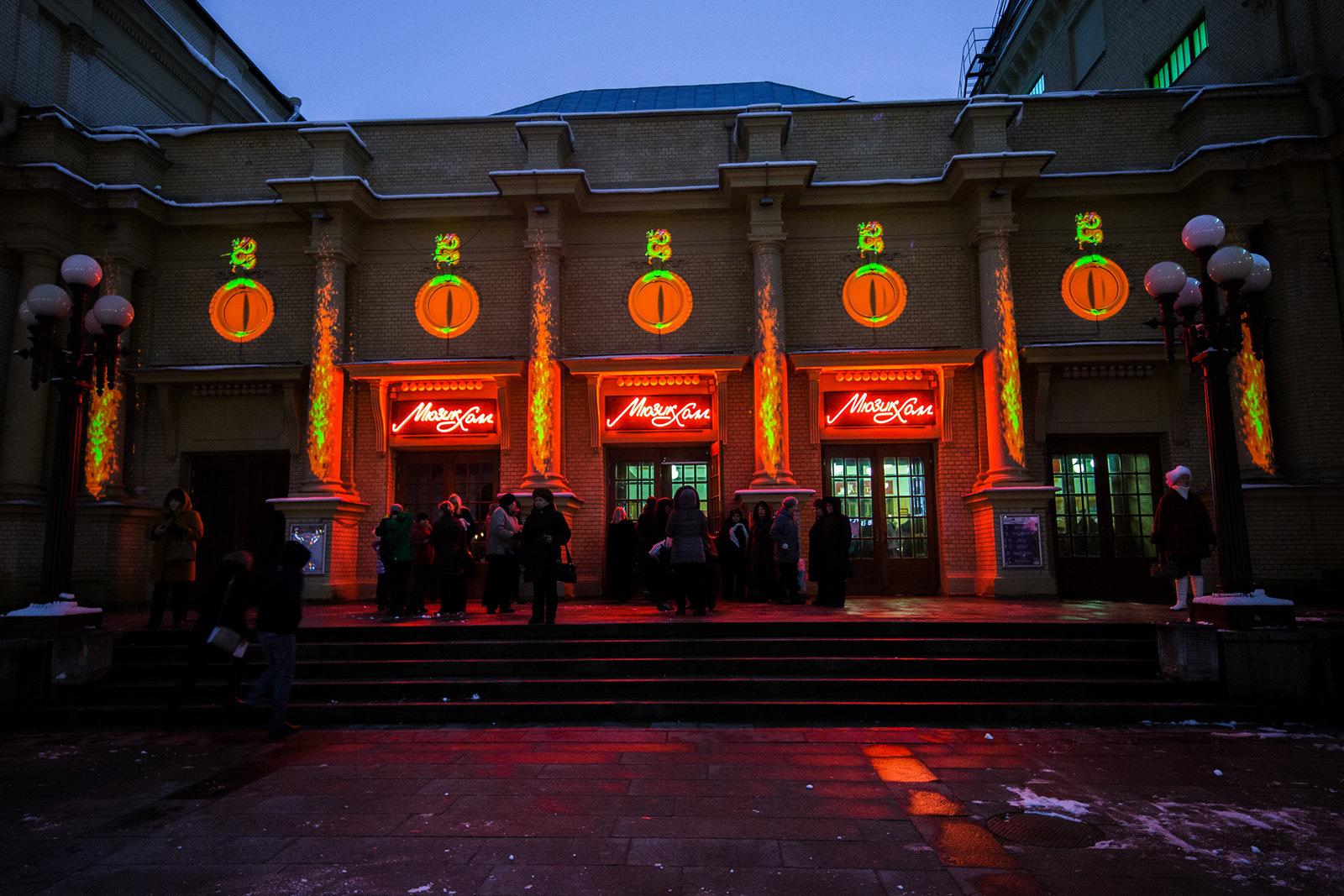 Мероприятия, посвященные празднованию китайского Нового года, проходят в Санкт-Петербурге с 7 по 23 февраля. Для горожан организованы лекции об истории и культуре Китая, кинофестиваль, а также несколько театральных представлений с участием артистов Поднебесной. Театр-фестиваль «Мюзик-Холл» также принял часть торжеств. Именно поэтому на фасад здания «заполз» красный дракон. Но ненастоящий — оптический.