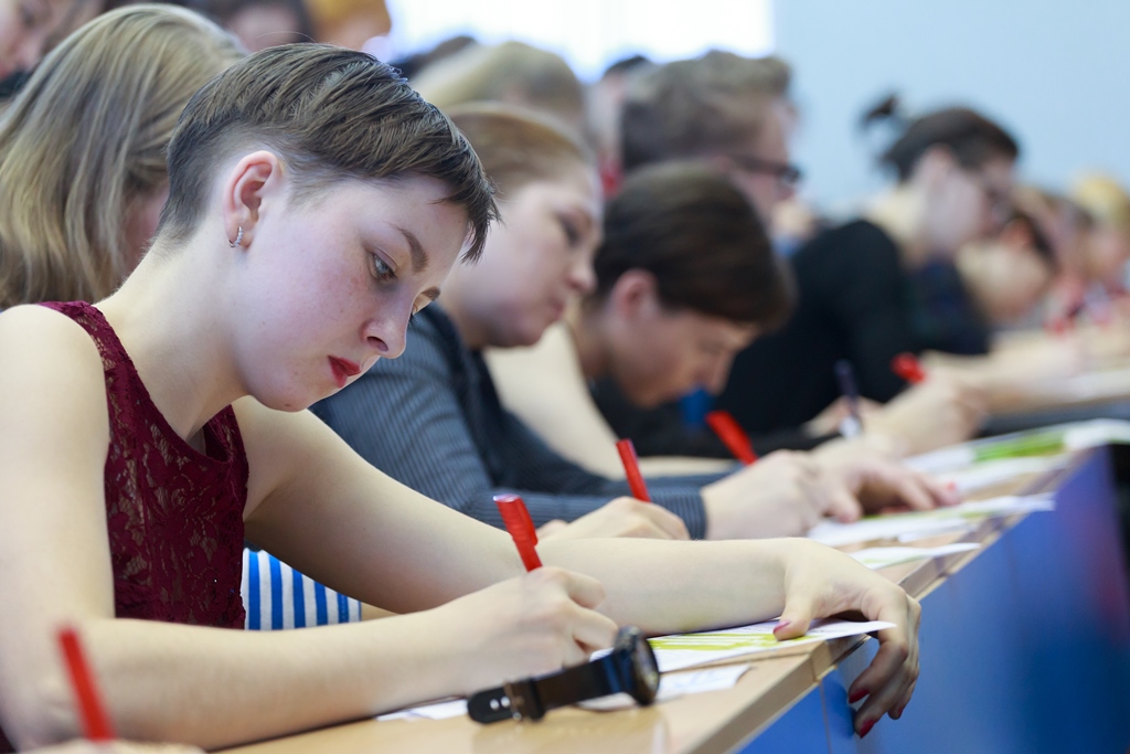 В главном здании университета на Кронверкском проспекте аудитория, где должен был пройти «Тотальный диктант», наполнилась под завязку. Проверить свои знания орфографии и пунктуации пришли школьники и студенты, люди зрелые и пожилые, «технари» и гуманитарии. Организаторы сразу пообещали не искать шпаргалки и не отнимать телефоны в надежде, что участники пришли испытать себя, а не свои мобильные девайсы. Несмотря на высокую планку, которую каждый раз задает «Тотальный диктант» участникам акции, идеологи «грамотного флешмоба» всячески разряжают волнительную обстановку перед началом диктанта. В этом году процесс заполнения бланков предварял шуточный выпуск новостей. Посмеявшись и расслабившись, участники прослушали текст полностью в исполнении автора Андрея Усачева и заполнили бланки. «Тотальный диктант» — это интеллектуальная забава, подчеркивают организаторы, поэтому любой желающий мог отказаться от оценки своей работы или использовать псевдоним вместо настоящих Ф.И.О.