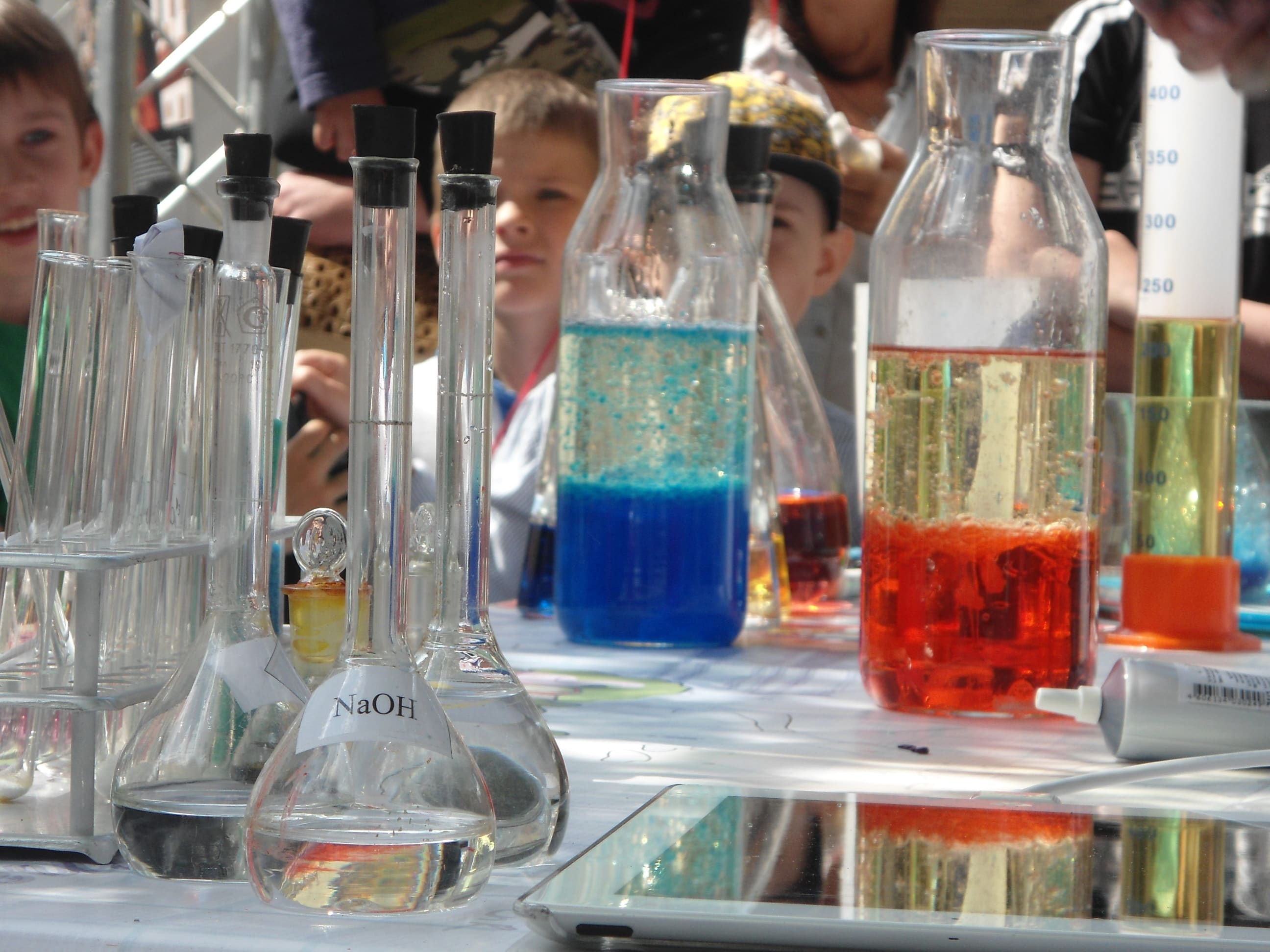 Одной из самых необычных продемонстрированных реакций стал так называемый «химический светофор». Используя в горячем щелочном растворе глюкозы индикатор индигокармин, студент при переливании щелочи получал раствор желтоватого цвета. Раствор после встряски становился красным из-за окисления, а после очень сильной встряски — зеленым. Но самое неожиданное было впереди: цвета после всех манипуляций сменяли друг друга в обратном порядке уже безо всяких интенсивных движений.