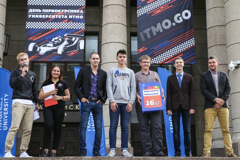 Честь поприветствовать своих одногруппников выпала и самим первокурсникам: представителю факультета среднего специального образования Александру Баталину, одному из лучших абитуриентов страны, школьнику из Кургана, набравшему 300 баллов ЕГЭ, а ныне студенту Университета ИТМО Даниилу Уткину, первокурснику магистратуры Университета ИТМО Максиму Алексееву, студенту первого курса аспирантуры Андрею Николаеву, а также первокурснику из Болгарии Петру Георгиеву, выступившему от лица иностранных студентов.